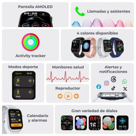 | Funcionalidades de salud | Monitor SpO2, frecuencia cardíaca, análisis de sueño y estrés |