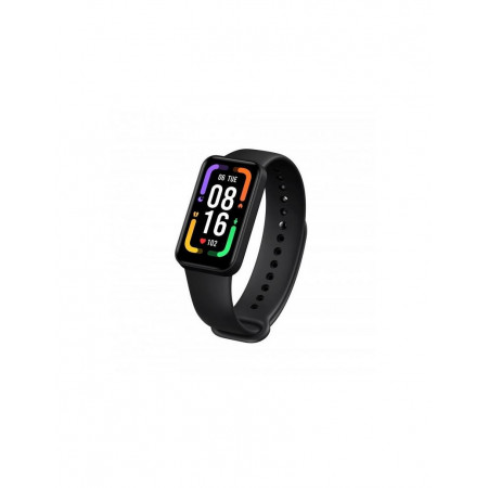 Este dispositivo no solo te mantiene conectado, sino que también se convierte en tu aliado ideal para un estilo de vida activo. Su diseño rectangular, elegante y ligero (solo 15 gramos), en color negro, se adapta cómodamente a tu muñeca. Además, su correa de poliuretano termoplástico (TPU) es ajustable y resistente, con un cierre de hebilla seguro. La Smart Band Pro está diseñada para resistir salpicaduras y es sumergible hasta 5 ATM, lo que la hace perfecta para entrenamientos intensos o incluso para nadar.
