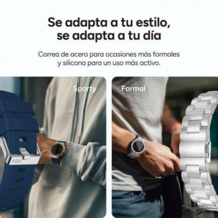 | Color de correa | Silicona negra (deportiva) y acero inoxidable plateada (formal) |