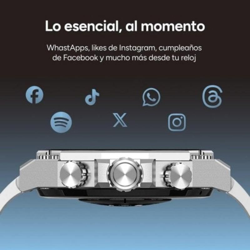 Su impresionante pantalla multitáctil AMOLED de 1.43 pulgadas, con una resolución de 466 x 466 píxeles, garantiza una visualización extraordinariamente nítida y colores vibrantes en cualquier condición de luz, desde interiores hasta exteriores. La durabilidad está asegurada gracias a su robusta caja de aleación de zinc y el cristal reforzado Asahi Glass. Además, el Ksix Titanium se adapta a cualquier ocasión, incluyendo dos correas universales de 22 mm: una de silicona deportiva en negro y otra elegante de acero inoxidable plateado.
