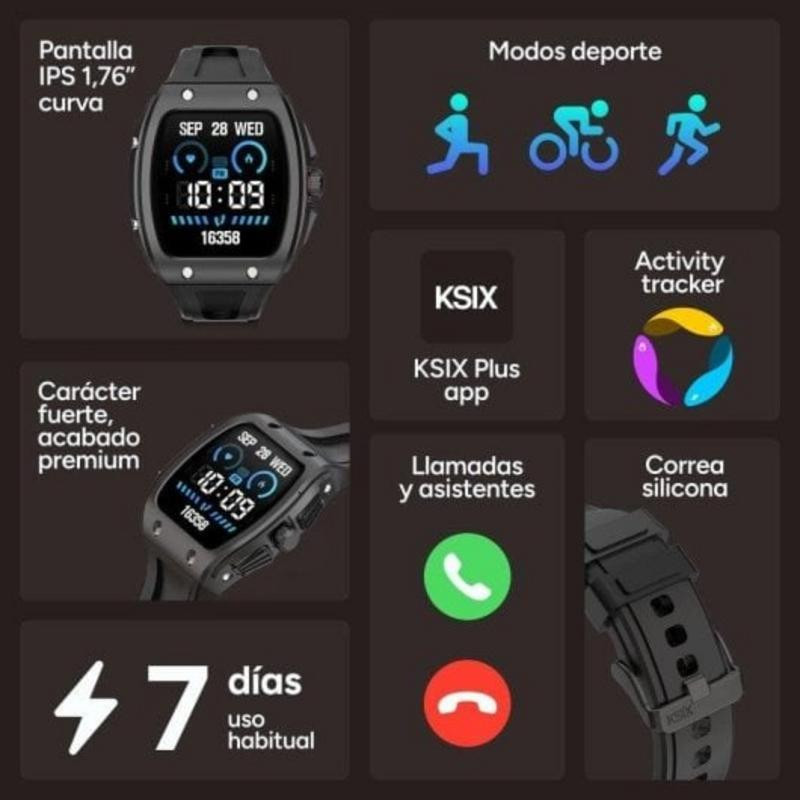 - Gestión Intuitiva: La gestión se realiza de forma intuitiva a través de la app KSIX Plus, compatible con Android e iOS, permitiendo la sincronización con Apple Salud, Google Health y Strava.