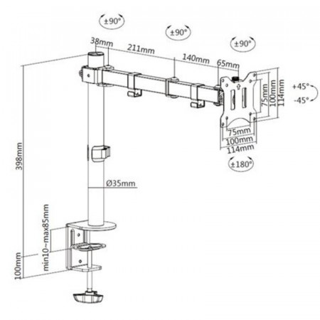 - Flexibilidad Total: Disfruta de una rotación de monitor de 360º, una inclinación vertical de +45º a -45º y una rotación de brazo de +90º a -90º para un ajuste ergonómico preciso.