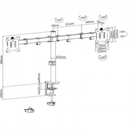 - Amplia Extensión y Altura: Con una extensión máxima del brazo de 454mm y una altura de columna de 398mm, ofrece un rango de ajuste amplio para adaptarse a tus necesidades.