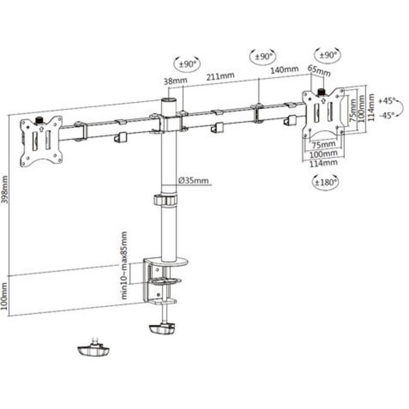 - Versatilidad de Movimiento: Ajusta tus monitores con total libertad gracias a su rotación de 360º, inclinación de +45º a -45º y giro de +90º a -90º, permitiéndote encontrar el ángulo de visión perfecto.