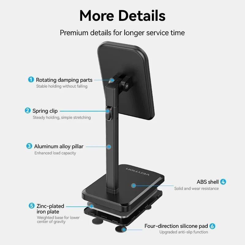 Disfruta de la comodidad y seguridad que te brinda este soporte Vention, ideal para trabajar, ver vídeos o realizar videollamadas con manos libres.