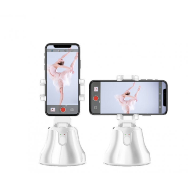 El soporte para teléfono con rotación de 360 grados y seguimiento facial automático utiliza inteligencia artificial para reconocer caras y objetos en movimiento. Girará automáticamente hacia donde te muevas y puede tomar fotografías de forma automática.