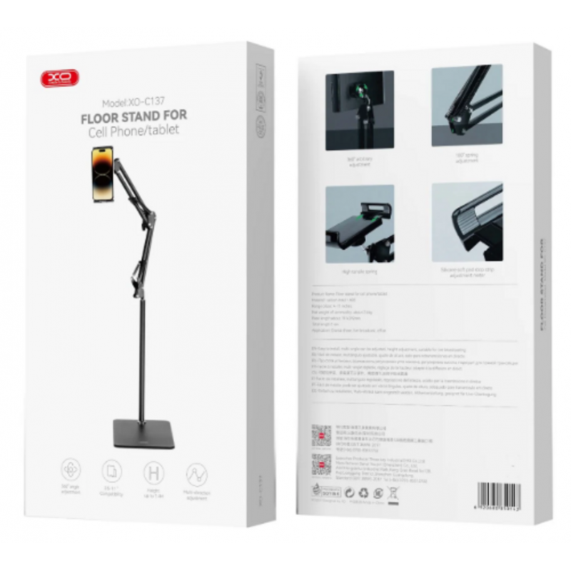 El soporte de suelo XO-C137 de XO es la solución definitiva para quienes buscan versatilidad y confort al utilizar sus dispositivos móviles y tablets. Fabricado con materiales de alta calidad, como la aleación de aluminio y el plástico ABS, este soporte garantiza durabilidad y una estabilidad excepcional, permitiéndote disfrutar de películas, lectura o videollamadas con total libertad y sin fatiga.