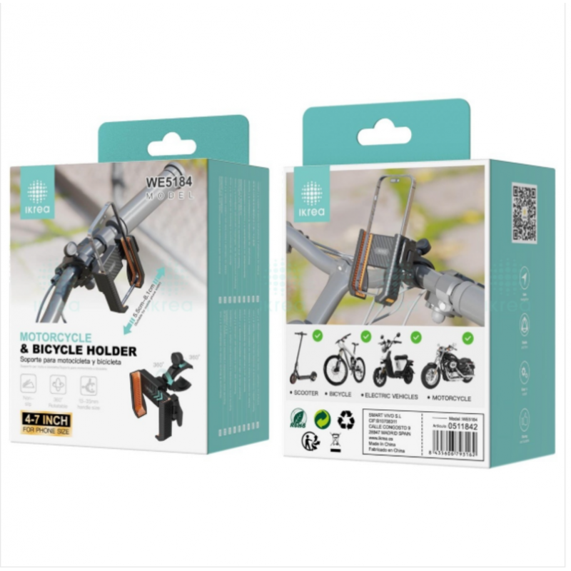 El soporte Ikrea Universal WE5184 es el accesorio perfecto para mantener tu móvil seguro y accesible durante tus trayectos en bicicleta o moto. Fabricado con materiales resistentes, este soporte universal garantiza una fijación estable al manillar, permitiéndote navegar, escuchar música o atender llamadas con total comodidad y seguridad.