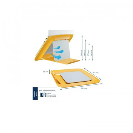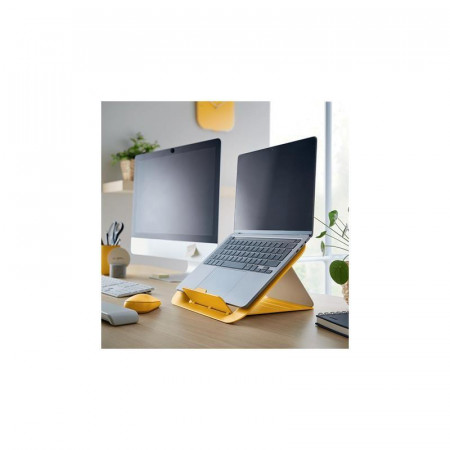 Mejora tu comodidad y postura con el elevador Leitz Ergo Cosy para portátiles. Este soporte eleva la pantalla de tu ordenador portátil, optimizando la visualización y fomentando una postura más saludable mientras trabajas.