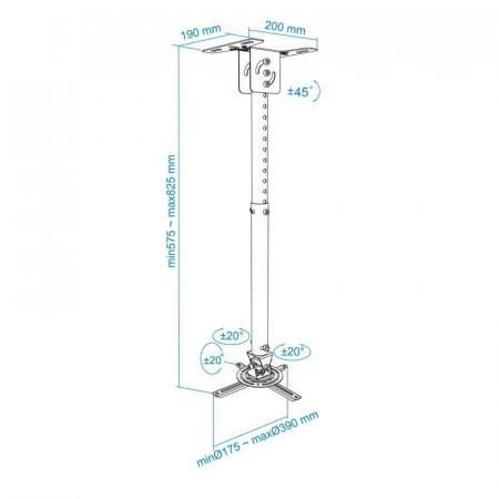 - Distancia entre el techo y el proyector ajustable: 575mm ~ 825mm