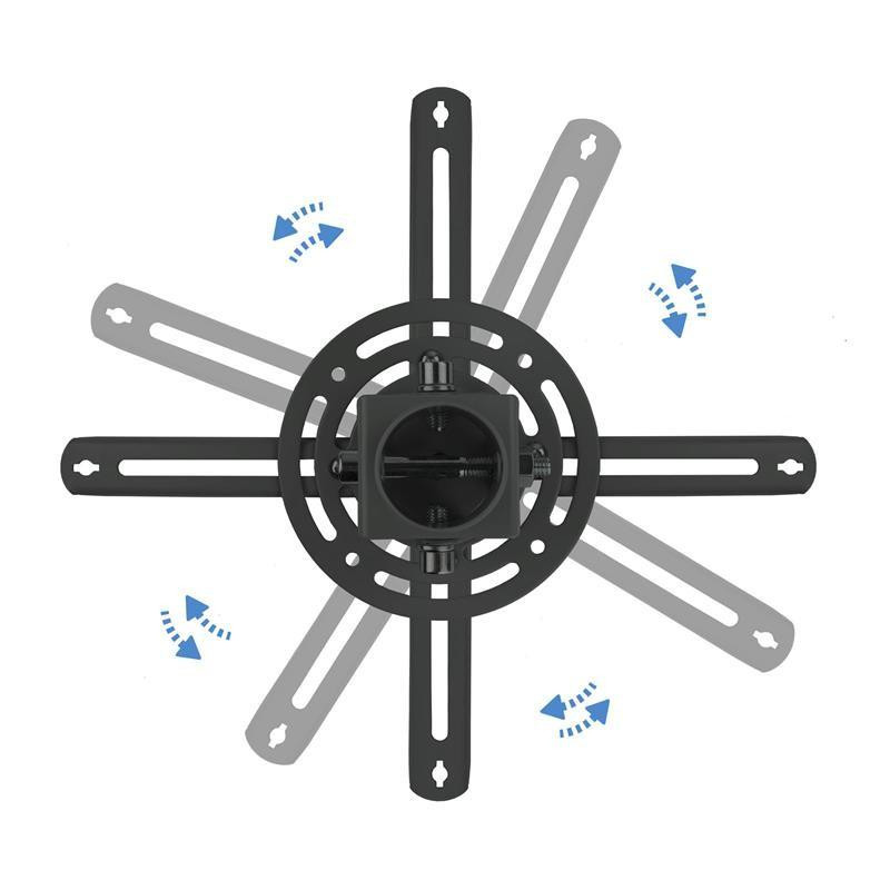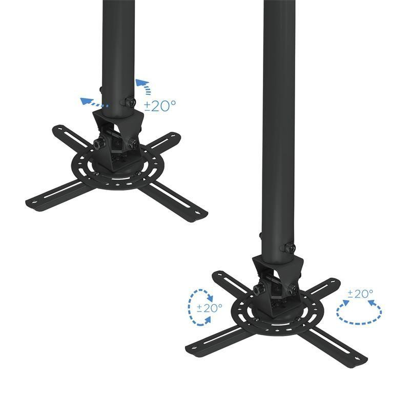 El soporte de techo universal para proyector de TooQ ofrece una solución versátil y segura para la instalación de su proyector en el techo. Su diseño giratorio de 360º e inclinable permite ajustar el ángulo de proyección para una visualización óptima.