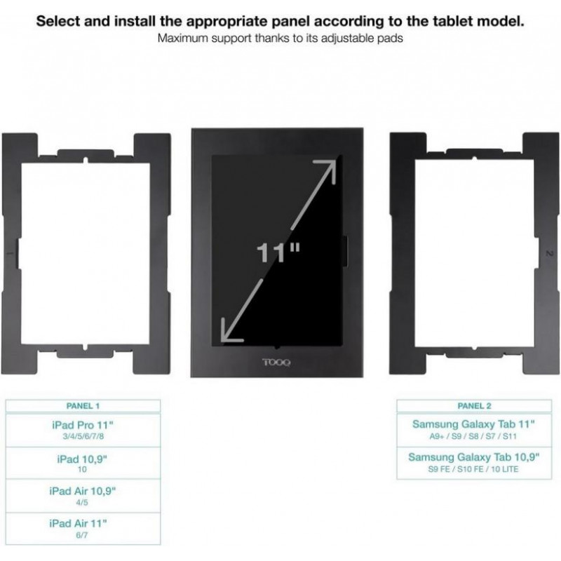 Protege y exhibe tu tablet de forma segura con el marco antirrobo TOOQ TQATTE2601-S-B, diseñado específicamente para dispositivos de 10.9 a 11 pulgadas. Este robusto marco es la solución ideal para entornos comerciales, puntos de información, recepciones, ferias o cualquier lugar donde se requiera máxima seguridad y accesibilidad controlada.