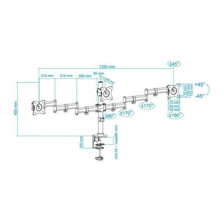 Características principales:- Soporte de mesa orientable para 3 pantallas de 13" a 27"