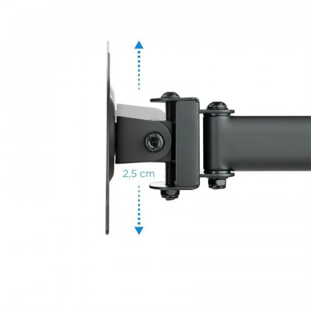 Fabricado con materiales de alta resistencia, el soporte garantiza la estabilidad y seguridad de tus monitores, soportando hasta 8 kg por brazo. Su diseño orientable y giratorio ofrece una flexibilidad total para adaptar la configuración a tus necesidades.