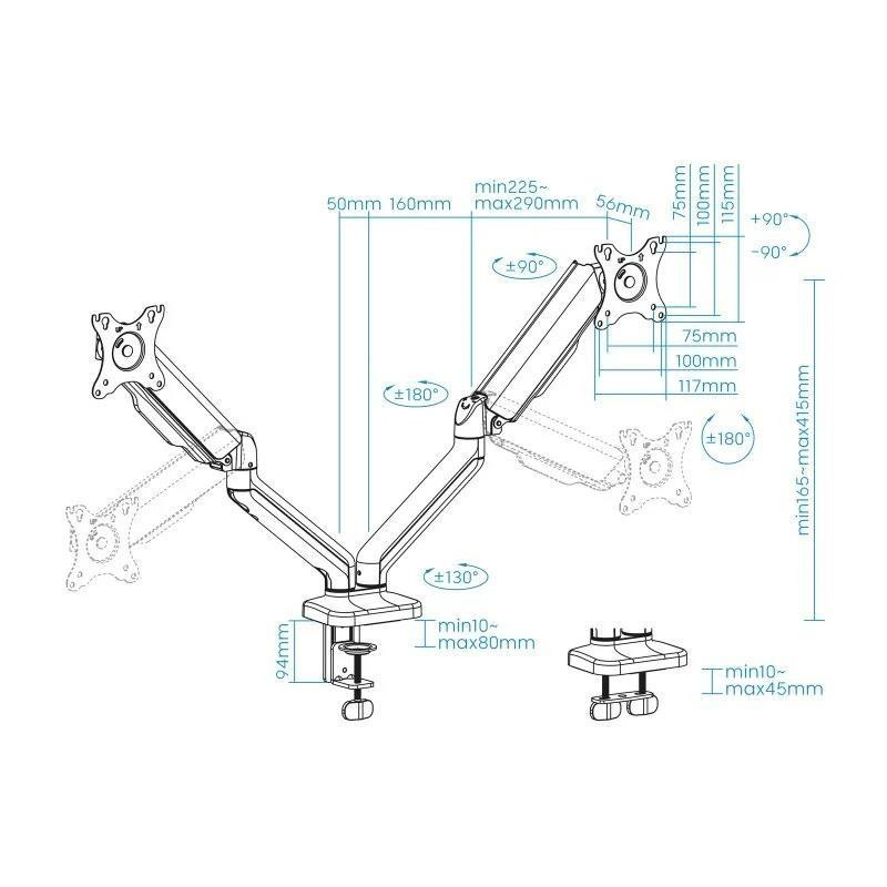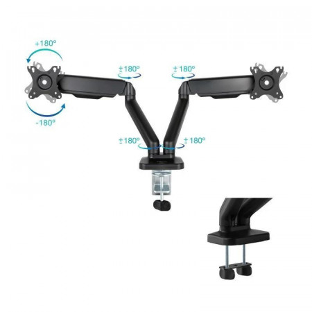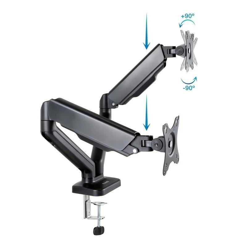 - ¡Doble o nada! Este soporte es perfecto para tus dos pantallas, optimizando tu espacio de trabajo o de juego.