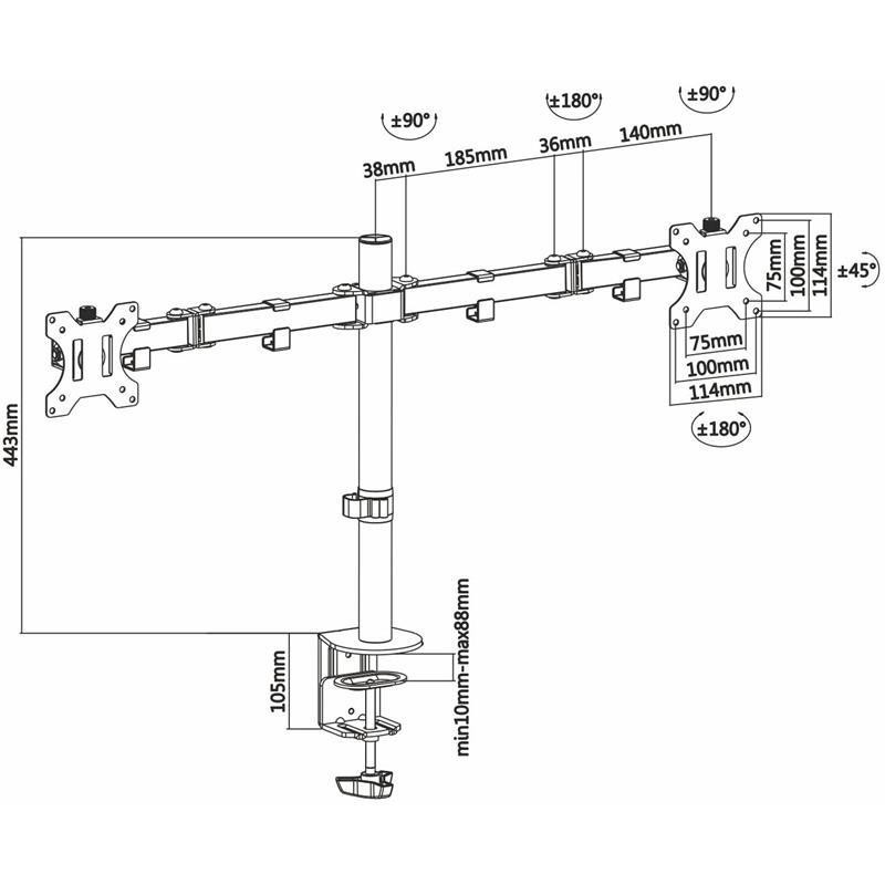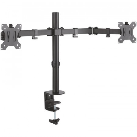 Fabricado con acero de alta resistencia y recubierto con pintura electrostática, este soporte garantiza durabilidad y un acabado estético impecable. Su diseño de 3 pivotes y 2 brazos ofrece una flexibilidad excepcional en la colocación de tu pantalla.