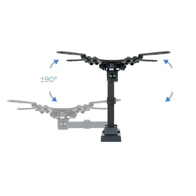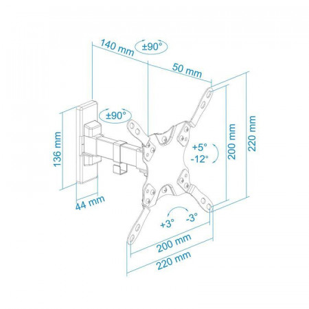 Su diseño permite una inclinación de -12º a +5º y un giro de 180º, lo que te permite ajustar el ángulo de visión para una experiencia visual óptima desde cualquier punto de la habitación. Además, es compatible con los estándares de montaje VESA 75x75, 100x100, 200x100 y 200x200 mm, asegurando una amplia compatibilidad con diferentes modelos de pantallas.