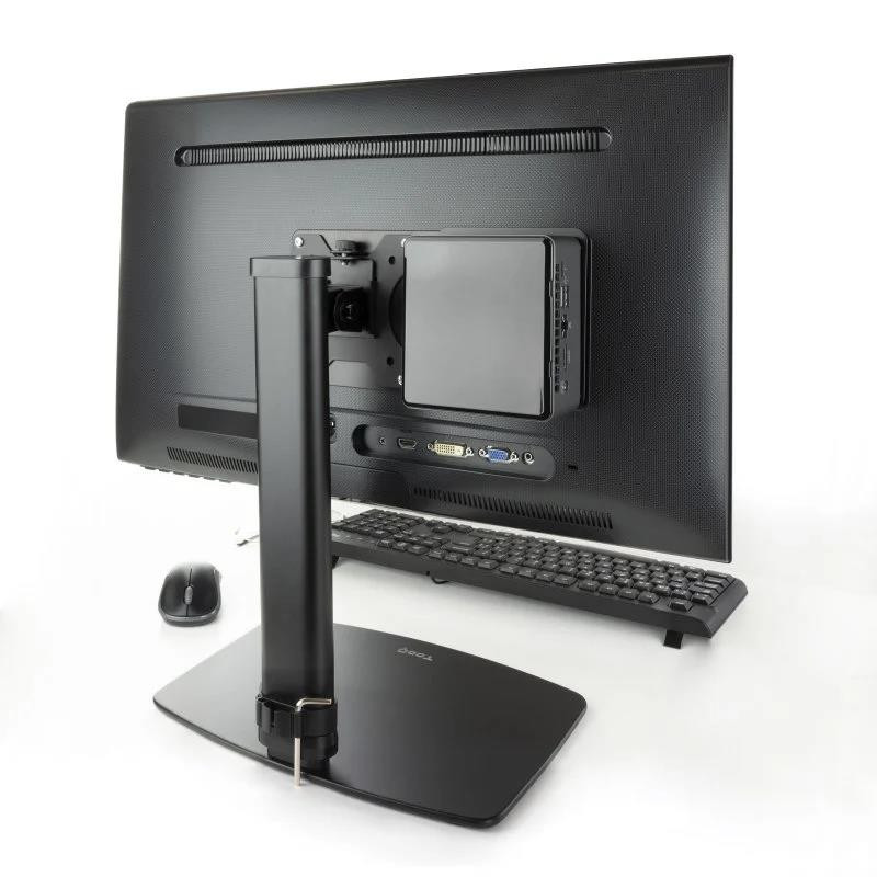 Compatible con una amplia gama de dispositivos, este soporte se adapta a pantallas con montaje VESA de 75x75 mm y 100x100 mm, y es compatible con mini PCs, NUCs y barebones que utilizan el estándar VESA 100x100 mm.