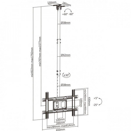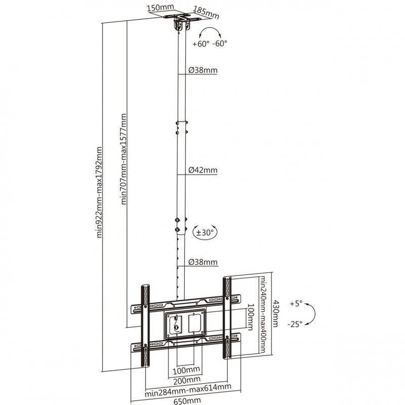 Características principales:- Soporte de techo giratorio, inclinable y extensible para monitores/TV de 37" a 80".