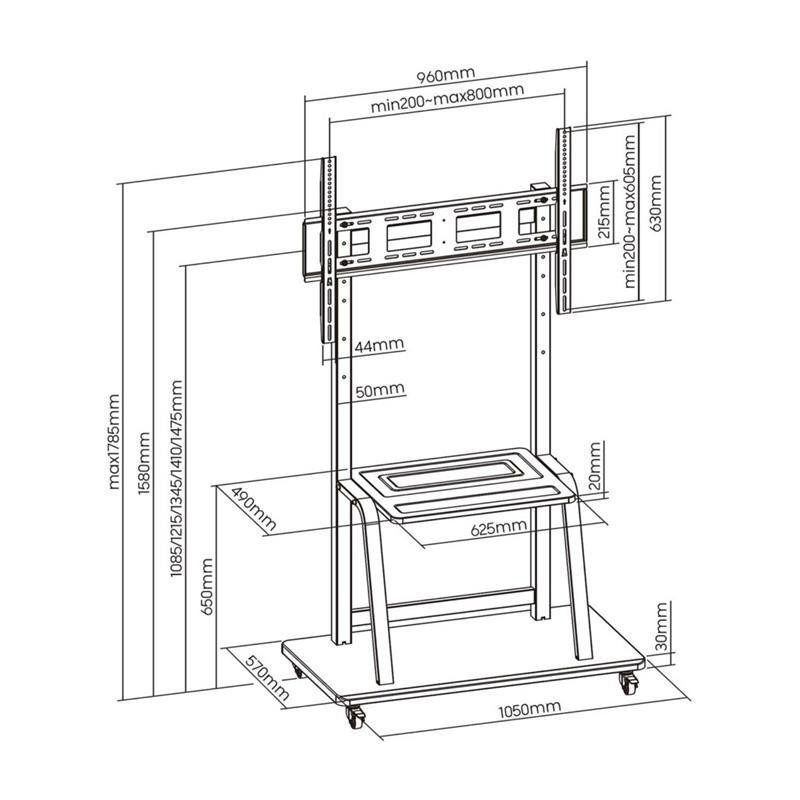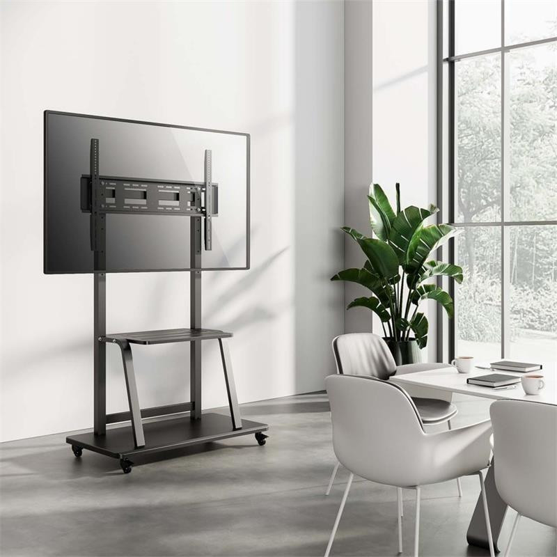 El soporte de suelo móvil de AISENS ofrece una solución robusta y versátil para montar tu televisor o monitor de gran tamaño. Diseñado para pantallas de 37 a 100 pulgadas y con una capacidad de carga de hasta 150 kg, este soporte garantiza estabilidad y seguridad.