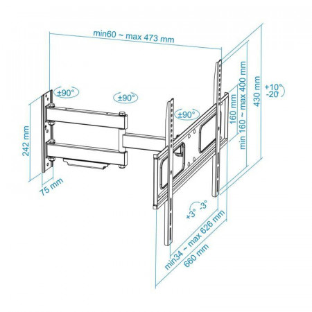 - Ángulo de giro máximo: 180º (depende del tamaño de la pantalla)