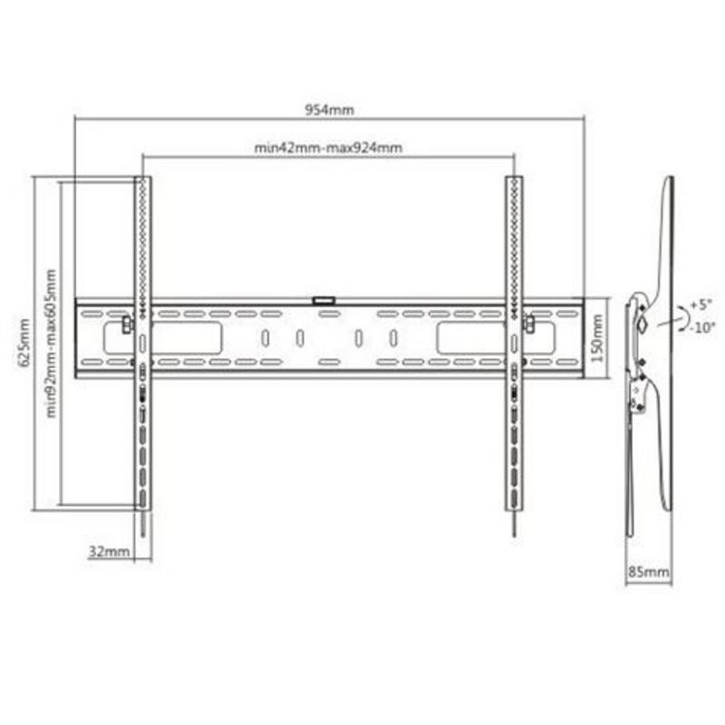 Su diseño permite una distancia mínima de 85 mm de la pared, ofreciendo un perfil elegante y discreto. La flexibilidad es clave con ángulos de inclinación ajustables de +5º a -10º, lo que te permite encontrar el punto de visión perfecto para evitar reflejos y disfrutar de tus contenidos con la máxima comodidad. Además, es completamente compatible con televisores de pantalla curva, ampliando sus posibilidades de uso.