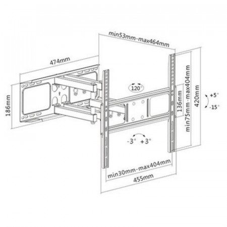 - Distancia ajustable a la pared: Regule la separación entre 53 y 464 mm para una visualización óptima.