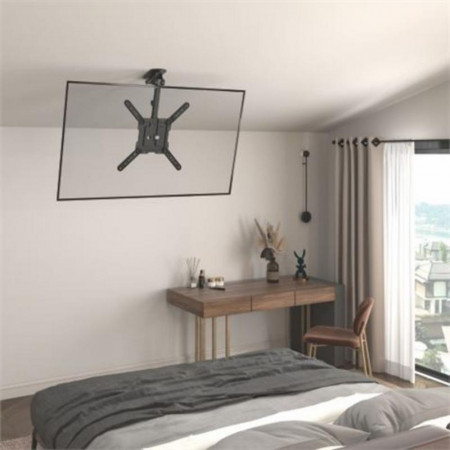 Optimiza tu espacio y disfruta de una experiencia visual inmejorable con el soporte de techo basculante Cromad, diseñado para televisores de pantalla plana de 23 a 55 pulgadas. Este versátil soporte es la solución ideal para montar tu televisión en cualquier habitación, incluso en aquellas con techos inclinados, gracias a su diseño flexible y adaptable.