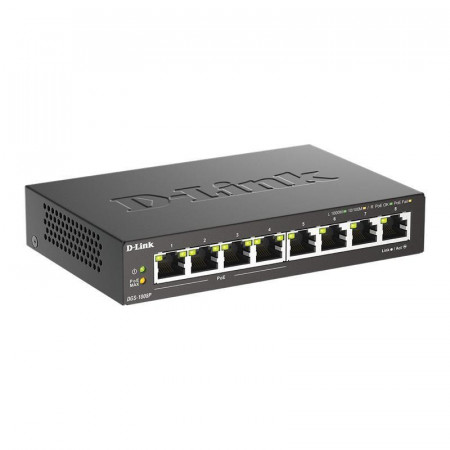 Su diseño sin ventilador garantiza un funcionamiento completamente silencioso, lo que lo hace ideal para entornos de trabajo sensibles al ruido, como oficinas, bibliotecas o salas de reuniones. El DGS-1008P/E es una solución versátil y fiable para ampliar la conectividad de tu red de forma sencilla y eficiente.