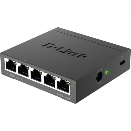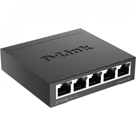 Con su robusta carcasa metálica y un diseño compacto, el D-Link DGS-105/E se integra fácilmente en cualquier entorno. Además, incluye un tornillo para toma de tierra, garantizando una conexión segura y estable.