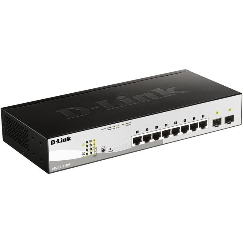 El D-Link DGS-1210-08P es un switch Gigabit Smart PoE de 8 puertos diseñado para pequeñas y medianas empresas. Este switch ofrece una combinación de rendimiento, seguridad y facilidad de gestión, lo que lo convierte en una solución ideal para optimizar su red.