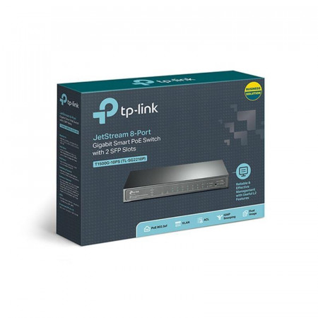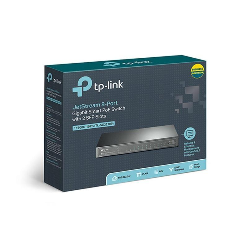 EAN 6935364030698El switch inteligente TP-Link JetStream T1500G-10PS ofrece una solución robusta y eficiente para redes empresariales. Equipado con 8 puertos RJ45 Gigabit y 2 ranuras SFP, este switch proporciona conectividad de alta velocidad para todos sus dispositivos.