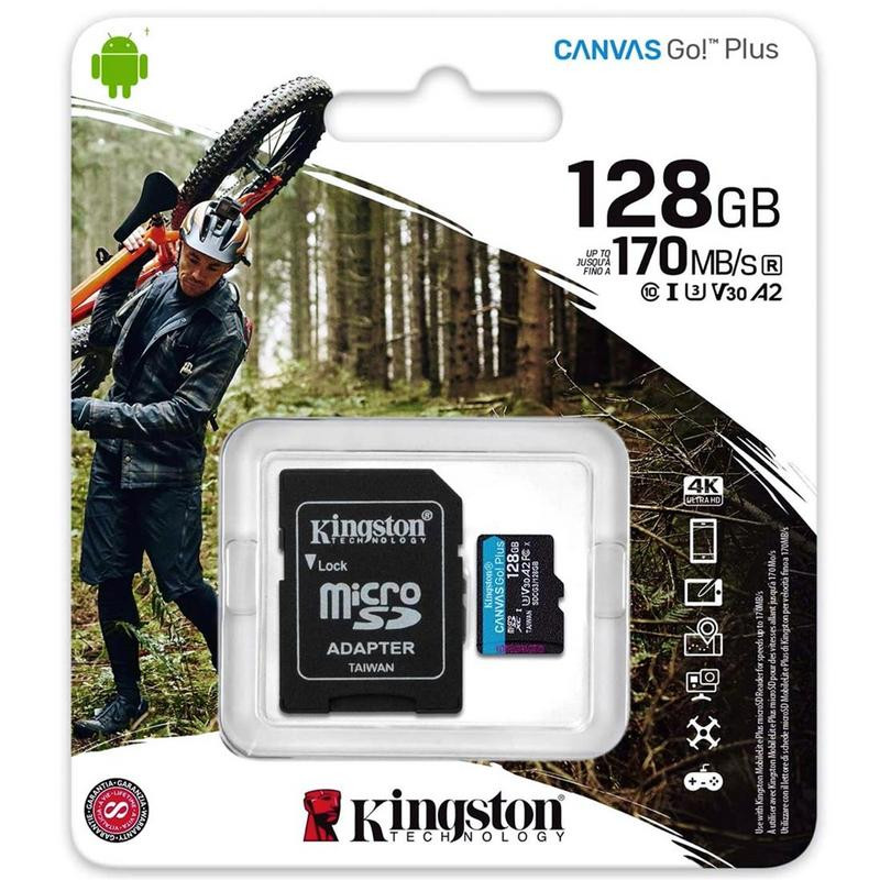 La tarjeta MicroSDXC Kingston Canvas Go! Plus de 128 GB está diseñada para ofrecer un rendimiento superior en dispositivos móviles, cámaras de acción y drones. Con velocidades de lectura de hasta 170 MB/s y velocidades de escritura de hasta 90 MB/s, esta tarjeta te permite capturar y transferir contenido de forma rápida y eficiente.