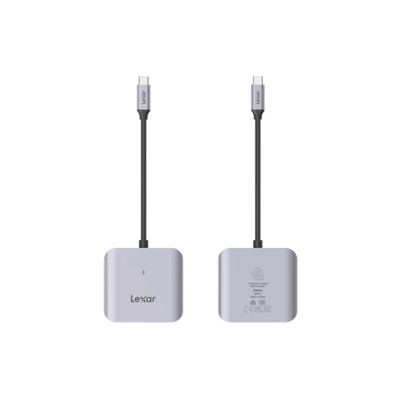 El lector Lexar® CFexpress™ Type B USB-C está diseñado para tarjetas CFexpress™ Type B y proporciona velocidades de 10 Gbps¹ para un flujo de trabajo fluido desde la ubicación hasta la postproducción. Con el cable USB Type-C™ incorporado, este lector compacto está diseñado para conectarse con los últimos dispositivos habilitados para USB-C para mayor flexibilidad y portabilidad.