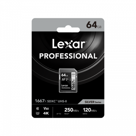 La tarjeta Lexar SD Pro Silver Series UHS-II V60 de 64GB está diseñada para satisfacer las demandas de los fotógrafos y videógrafos profesionales. Con una capacidad de almacenamiento de 64GB, esta tarjeta ofrece espacio suficiente para capturar una gran cantidad de imágenes de alta resolución y vídeos en 4K.