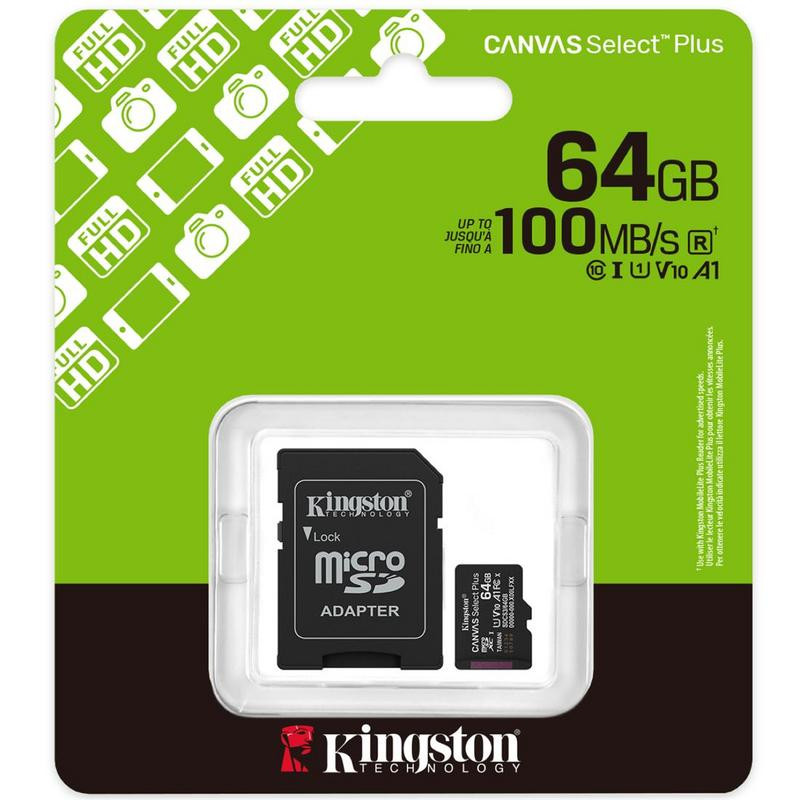 La tarjeta microSDXC Canvas Select Plus de Kingston es ideal para grabar vídeos en HD y tomar fotos de alta resolución. Su velocidad de lectura de hasta 100 MB/s asegura transferencias rápidas y eficientes.