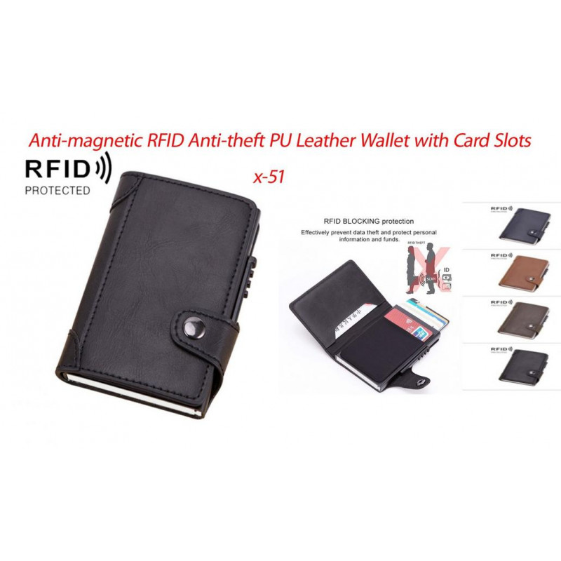 - Protección RFID: Incorpora tecnología de bloqueo RFID (Radio-Frequency Identification) para salvaguardar tus datos personales y bancarios contra escaneos no autorizados.