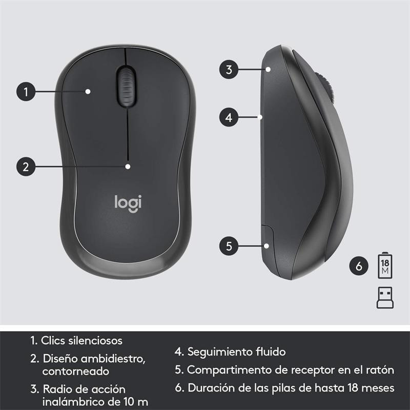 | Incluye | Teclado con 2 pilas AAA, Ratón con 1 pila AA, Receptor USB, Documentación del usuario |