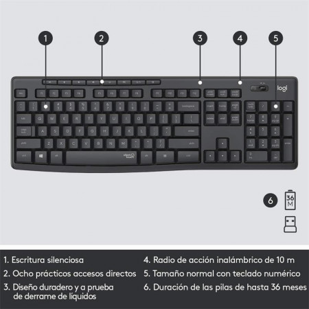 - Larga Duración de las Pilas: 36 meses para el teclado y 18 meses para el ratón.