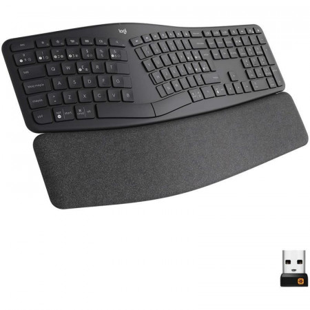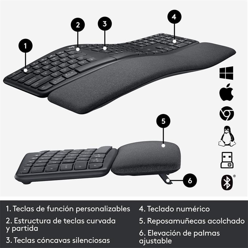 El Logitech Ergo K860 es un teclado inalámbrico ergonómico diseñado para ofrecer una experiencia de escritura más natural y cómoda. Su diseño curvado y dividido reduce la tensión muscular en las muñecas y los antebrazos, promoviendo una postura de escritura más relajada.