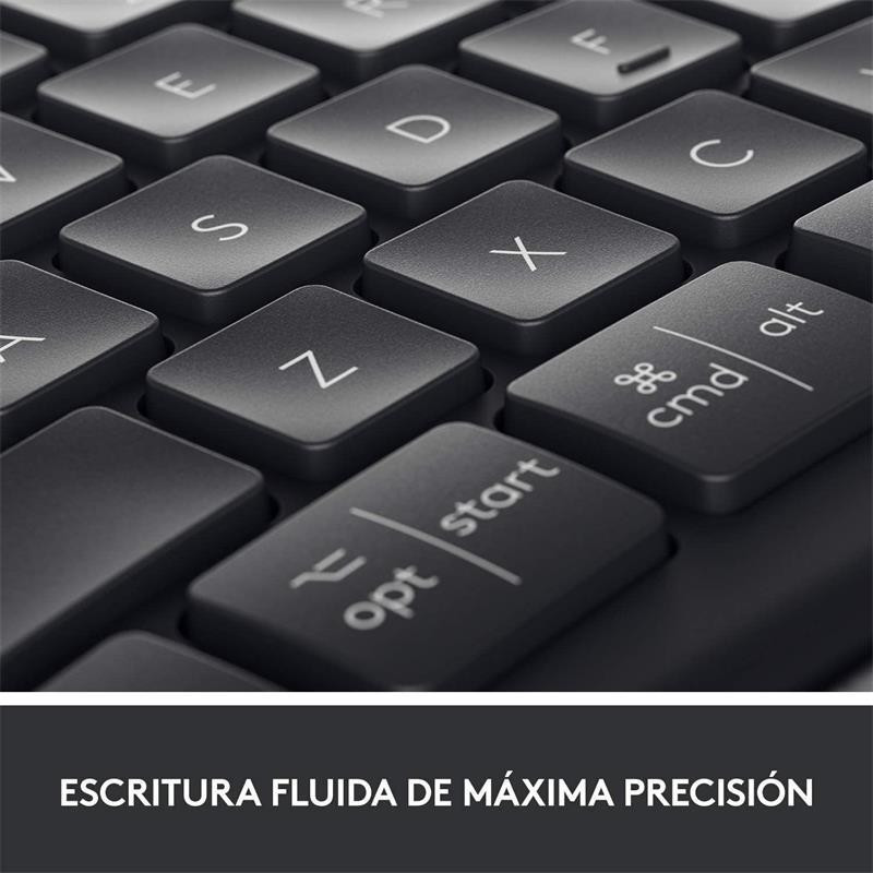 Las teclas Perfect Stroke están diseñadas para ofrecer precisión y fluidez, adaptándose a la forma de las yemas de los dedos para una escritura más cómoda y segura. El teclado también incluye un teclado numérico integrado y funcionalidades multidispositivo.