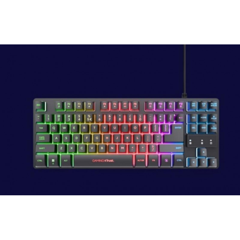 El teclado TKL (Tenkeyless) ofrece un diseño compacto que ahorra espacio en tu escritorio, ideal para gamers que buscan optimizar su espacio de juego. La iluminación LED RGB con efecto de respiración y personalización de colores te permite crear un ambiente de juego único.