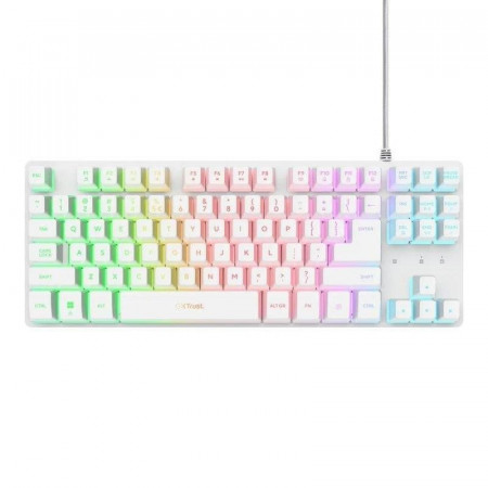 Domina el campo de batalla virtual con el teclado gaming Trust GXT 833W Thado TKL, una herramienta compacta y robusta diseñada para ofrecer un rendimiento de alto nivel en tus sesiones de juego. Este teclado, en elegante color blanco, ha sido creado pensando en las exigencias de los jugadores más serios, proporcionando una combinación perfecta de funcionalidad, durabilidad y estilo.