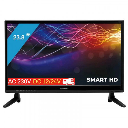 Disfruta de entretenimiento de alta calidad en tus viajes con el televisor Emmits de 23.8 pulgadas. Este Smart TV D-Led con resolución Full HD y sintonizador Dvb-T2 ofrece una experiencia visual nítida y colorida.