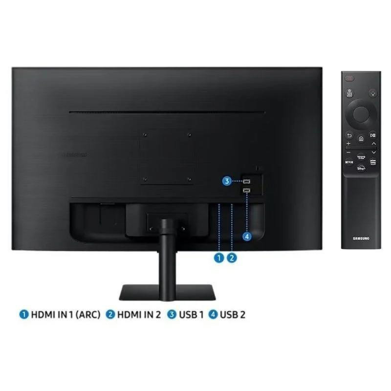 El Samsung Smart Monitor M5 de 27 pulgadas redefine tu espacio de trabajo y entretenimiento. Disfruta de la versatilidad de un monitor que funciona como Smart TV, permitiéndote acceder a tus aplicaciones de streaming favoritas sin necesidad de una PC.