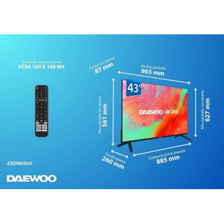 Sumérgete en una experiencia visual impresionante con el televisor Daewoo 43DM65UV. Este televisor LED de 43 pulgadas ofrece una calidad de imagen 4K UHD, brindando colores vibrantes y detalles nítidos para disfrutar al máximo de tus películas, series y videojuegos.