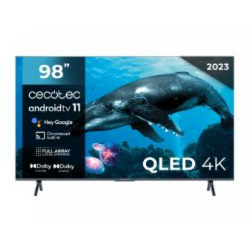 Sumérgete en una experiencia visual inigualable con el televisor CECOTEC V3+ VQU30098+ de 98". Disfruta de colores vibrantes gracias a su tecnología QLED 4K UHD, 120Hz y HDR10. Conecta tus dispositivos fácilmente con USB 3.0 y HDMI 2.1. Vive un sonido envolvente con Dolby Vision/Atmos y controla tu TV con Google Voice Assistant y Chromecast. Todo impulsado por Android TV 11.