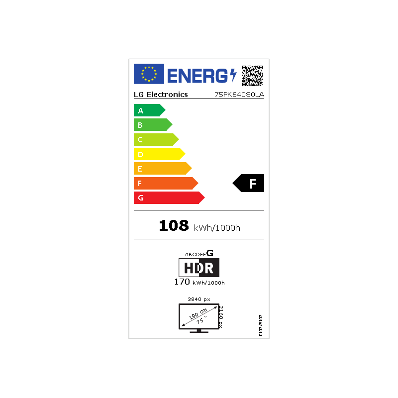 | Diagonal de la pantalla | 190,5 cm (75") |