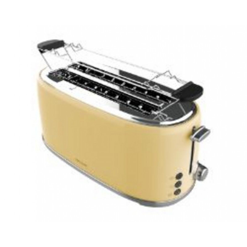Disfruta de tostadas perfectas con la tostadora CECOTEC Toast&Taste 1600 Retro Double. Cuenta con 2 ranuras anchas y largas para hasta 4 tostadas, y está fabricada en acero de color beige.