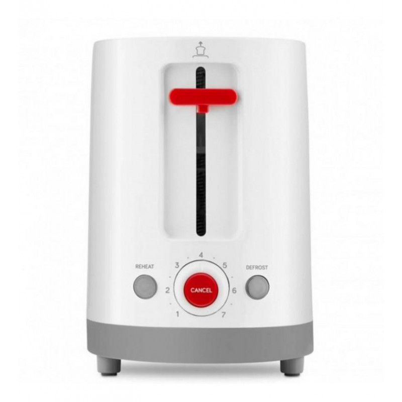 Cuenta con un selector electrónico de tostado con 7 posiciones diferentes, permitiéndote elegir la intensidad ideal para cada tipo de pan. Además, incorpora funciones muy prácticas como descongelación, ideal para pan directamente del congelador; recalentamiento, para refrescar tus tostadas sin quemarlas; y la función parada, para un control total en cualquier momento.